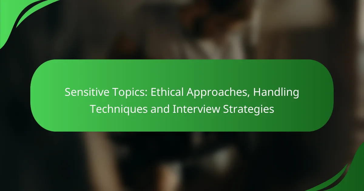 Effective techniques for handling sensitive topics include active listening, non-verbal communication, and creating a safe interview environment. These approaches help build trust and facilitate open dialogue, making it easier to discuss challenging subjects.
